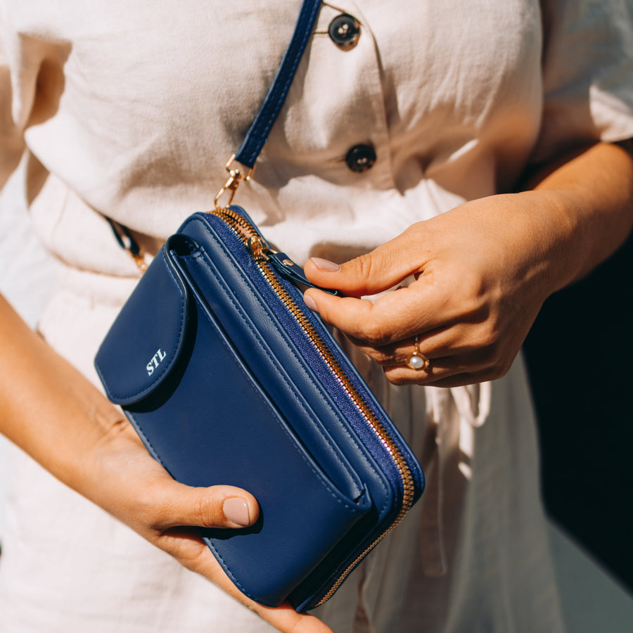 It has room for your cards, cash, glasses, keys, passport and much more. It also has an external pocket with a convenient push-button, to safely store your mobile phone.